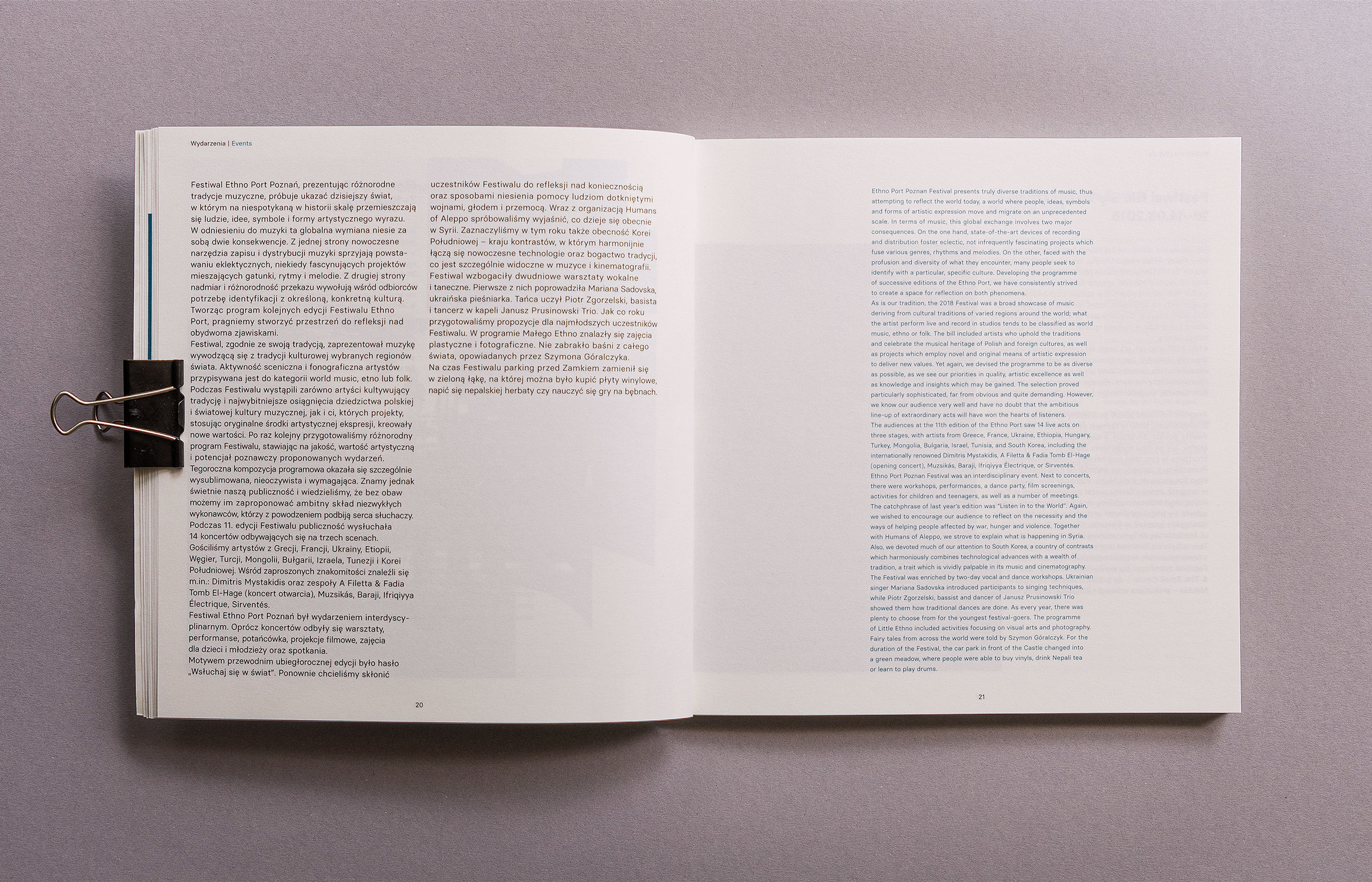 Graphic design, composition and preparation for printing of the 2018 Yearbook for the Zamek Culture Center in Poznań. The book design alludes to architectural elements of the neo-Romanesque building in which the Cultural Center is found, the last Hohenzollern palace (1905).